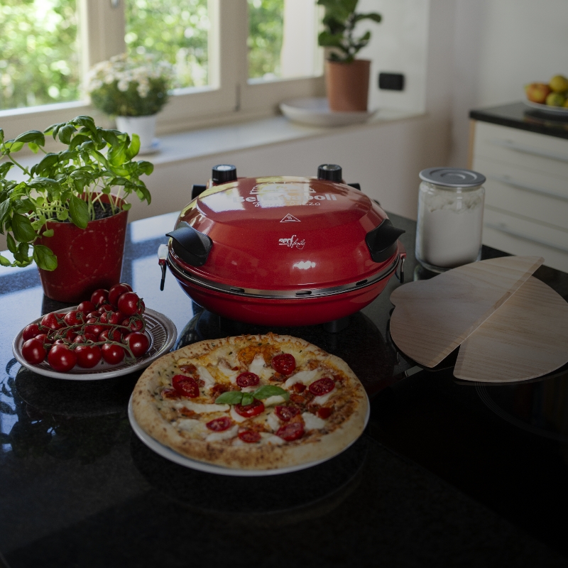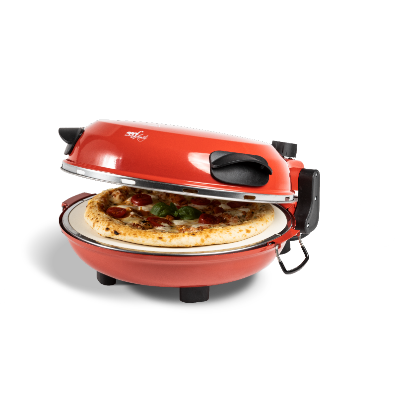 Grazie alla pietra refrettaria e all'alta temperatura raggiunta dagli elementi riscaldanti posti sopra e sotto la pietra, questo forno elettrico è stato ideato per cuocere la pizza a casa con lo stesso risultato della pizzeria.