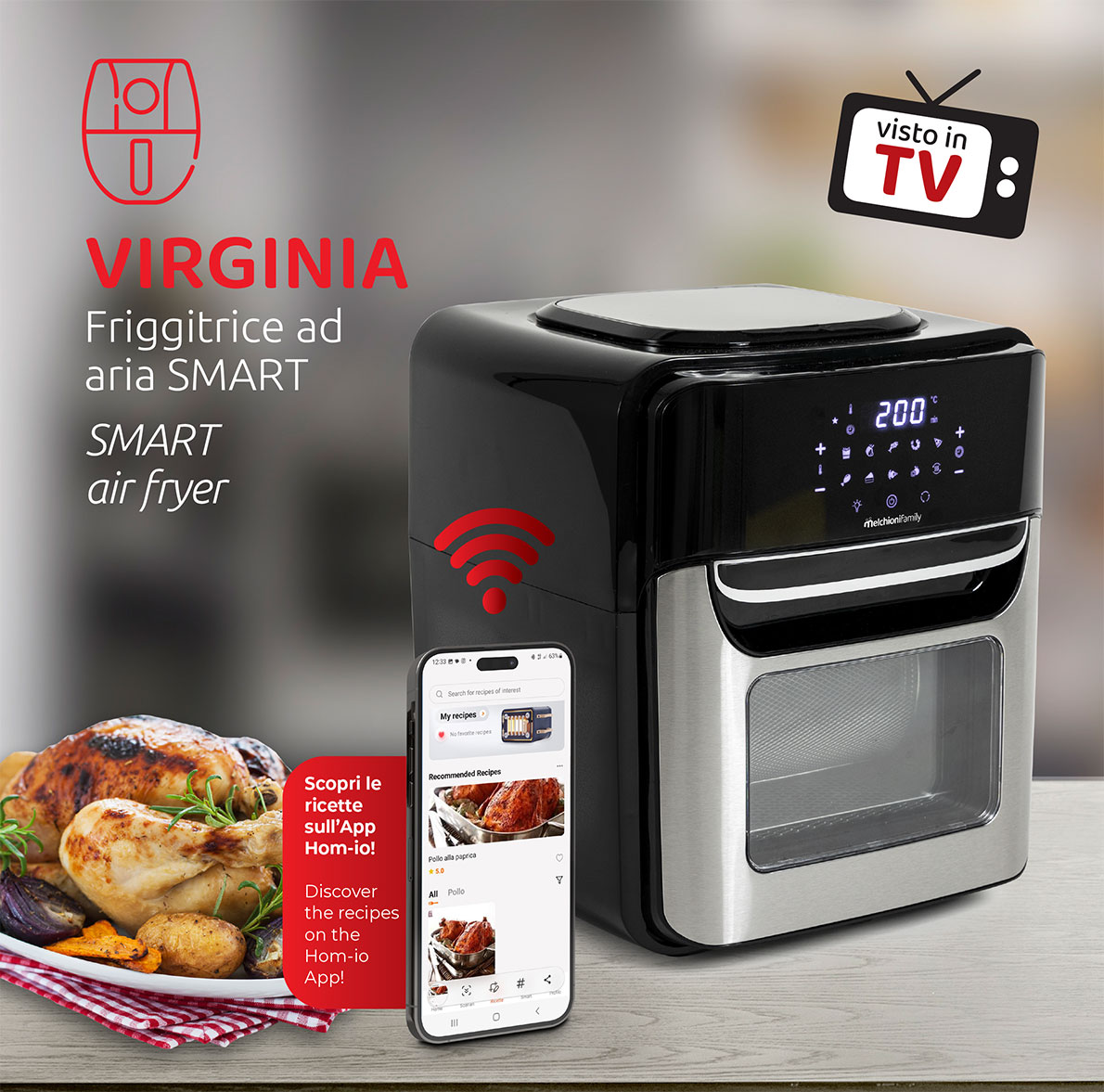 Potrai attivare la tua friggitrice attraverso l’App Hom-io oppure usando il comando vocale di Amazon Alexa o Google Home comodamente seduto sul divano. La temperatura e il timer sono facilmente regolabili dallo smartphone.